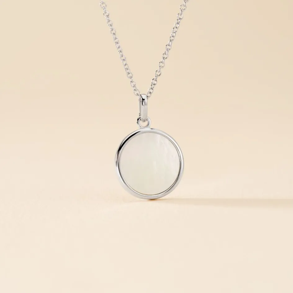 Collier Argent Blanc 925/1000 Nid Nacre Blanc 0.94 Cts Largeur 1mm 45cm