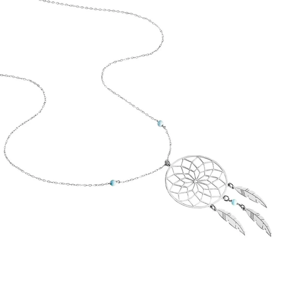 Collier Sautoir Argent Blanc 925/1000 Attrape Reves Pierres Bleues Maille Forcat 80cm