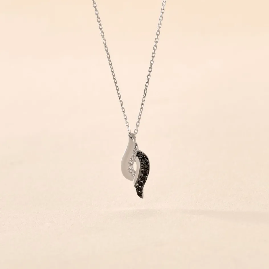Collier Or Blanc 375/1000 Diamants Et Diamants Noirs 42cm