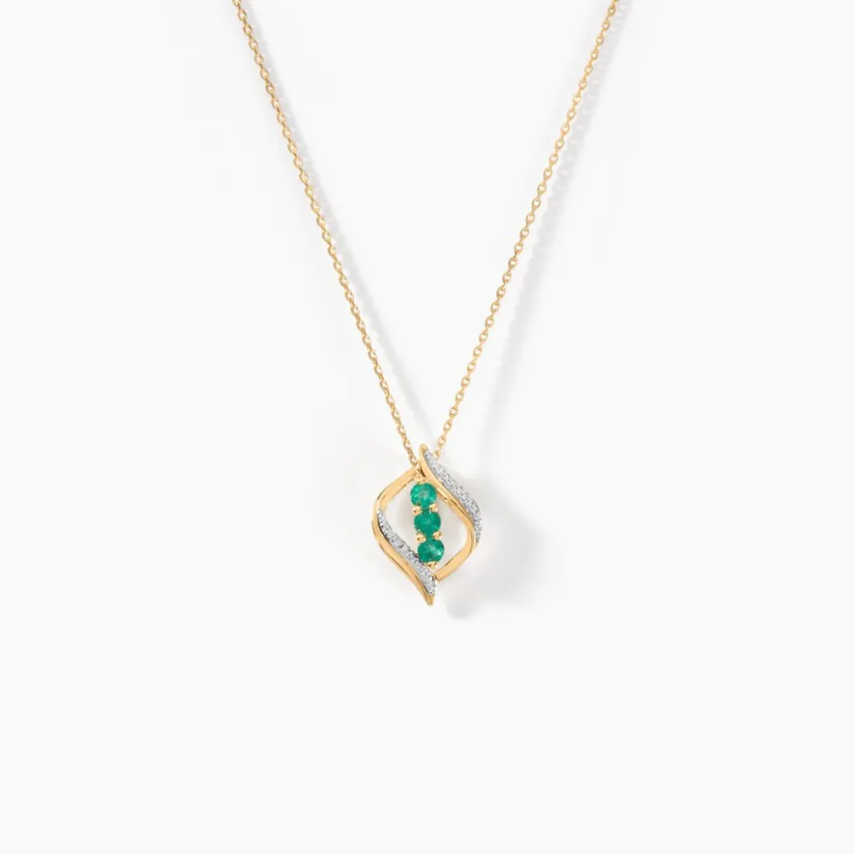 Collier Or Jaune Trilogie 375/1000 3 Emeraudes Vertes Accompagnés Diamants 42 Cm