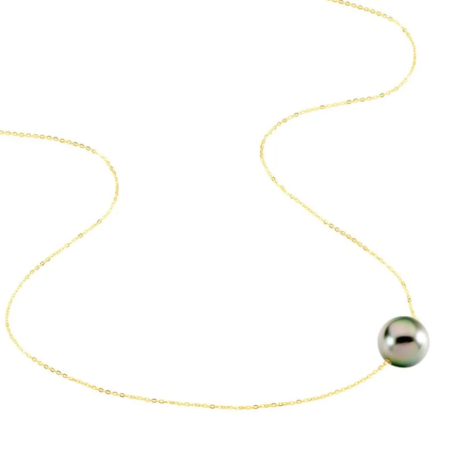 Collier Chaine Forçat Diamanté Or Jaune 375/1000 Perle De Culture Tahiti 9/10mm Semi-ronde 42cm