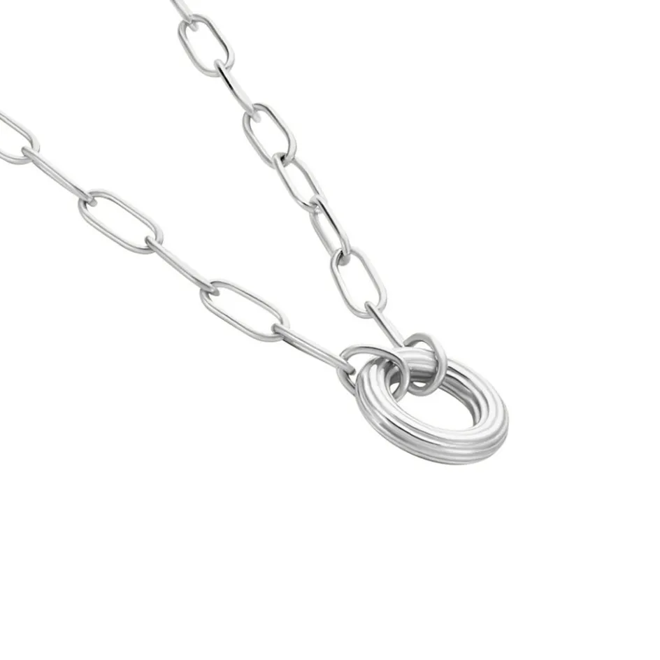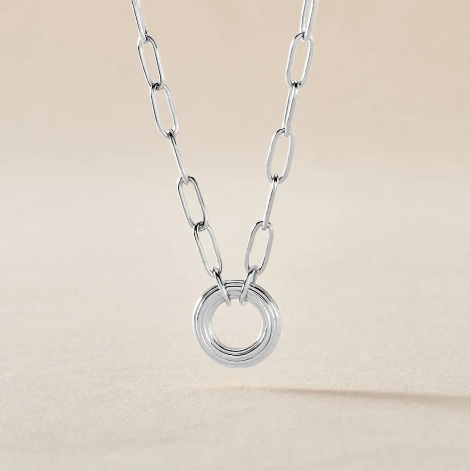 Collier Argent Blanc 925/1000 Cercle Strié Maille Cheval 45cm