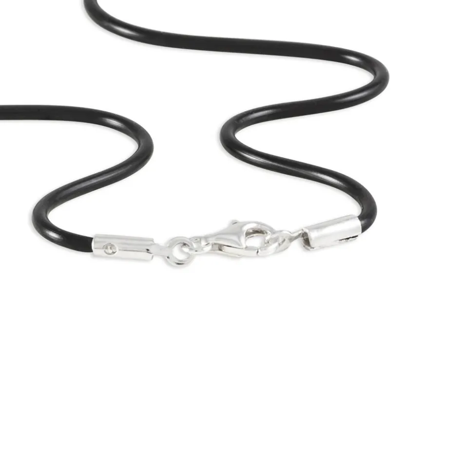 Collier Argent 925/1000 Cordon Caoutchouc Noir 45cm