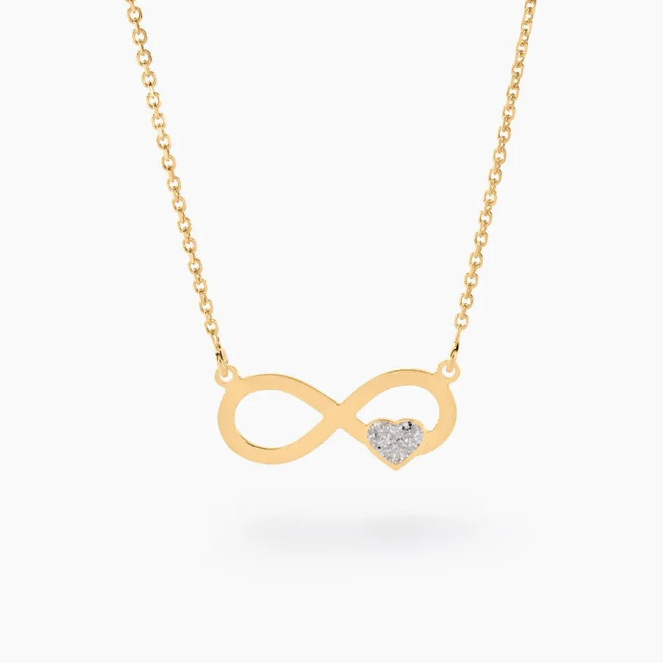 Collier Or Jaune 375/1000 Infini Et C艙ur Glitter Argente Maille Jaseron 40+2cm