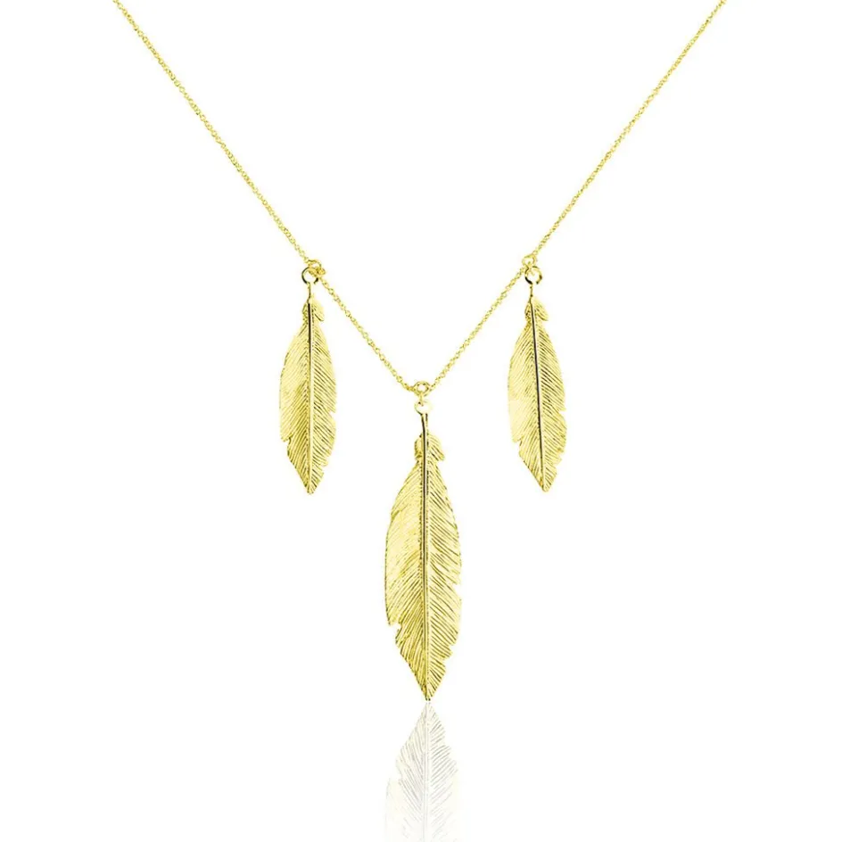 Collier Or Jaune 375/1000 Triples Plumes Maille Forcat 45cm