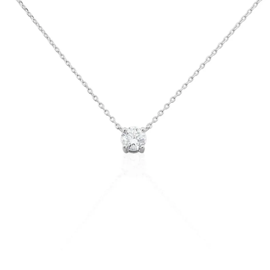 Collier Solitaire Platine 950/1000 Blanc Diamant 0.30cts Serti 4 Griffes Maille Forçat 45cm