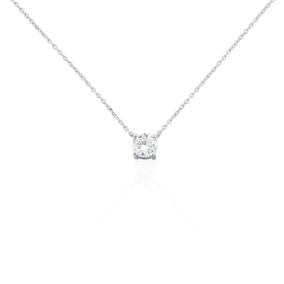 Collier Solitaire Platine 950/1000 Blanc Diamant 0.40cts Serti 4 Griffes Maille Forçat 45cm