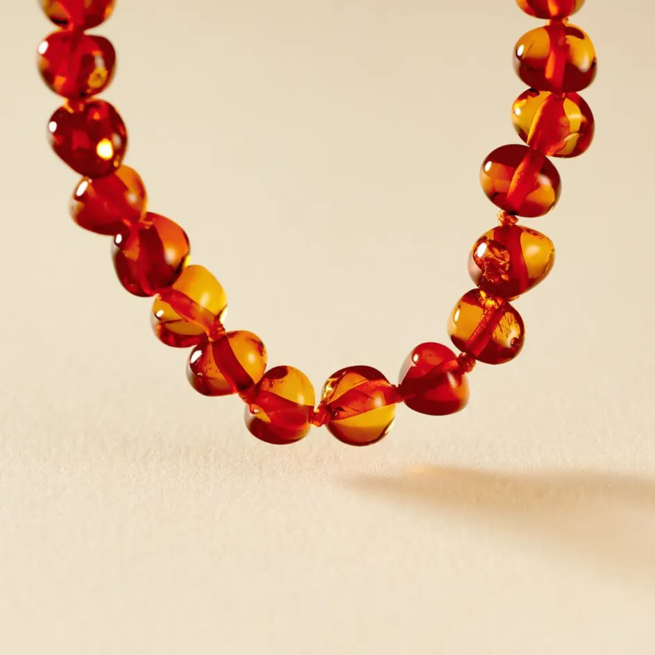 Collier Bebe Ambre Cognac Ronds Fermoir Clip 34-36cm