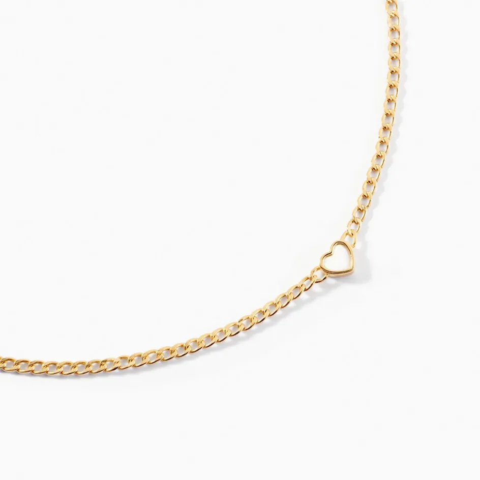 Collier Or Jaune 375/1000 C艙ur Nacre Maille Gourmette 42cm