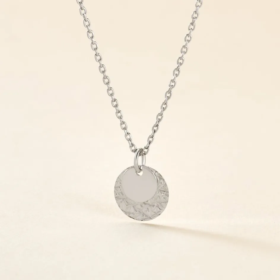 Collier Argent Blanc 925/1000 Pastille Effet Diamanté Maille Forcat 45cm