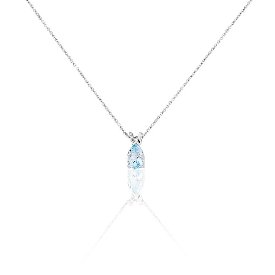 Collier Or Blanc 375/1000 Topaze Forme Goutte Accompagnée Diamants 42cm