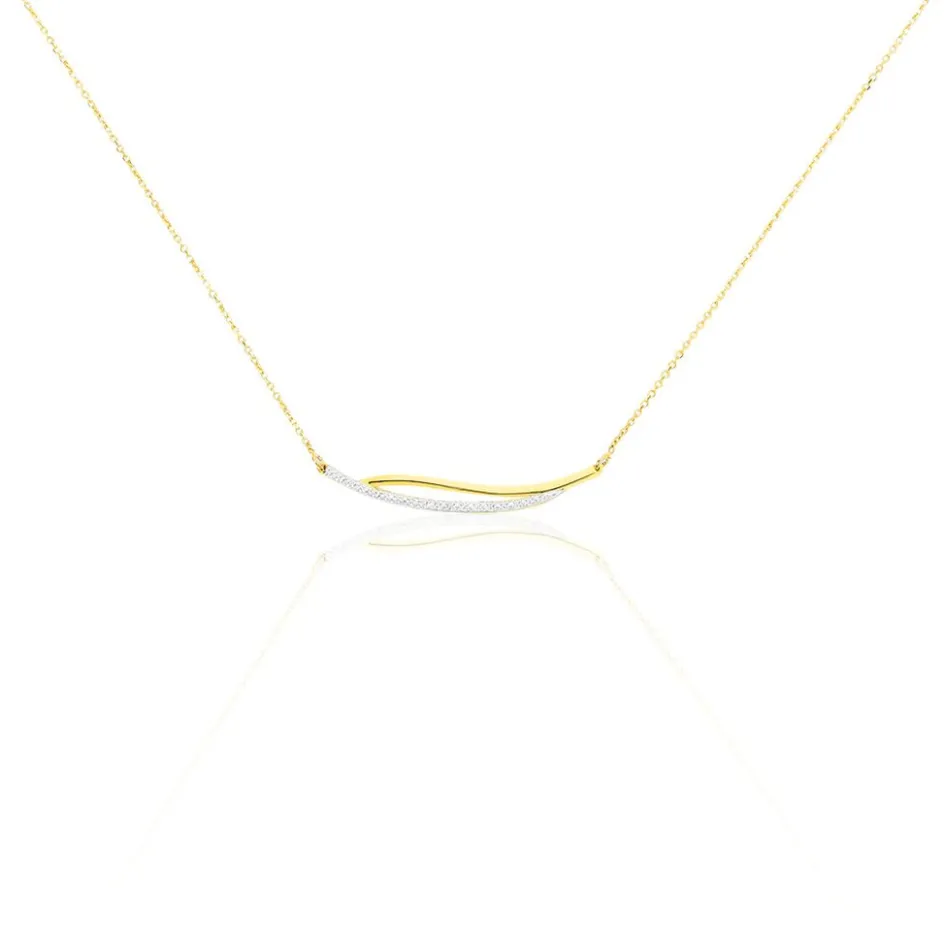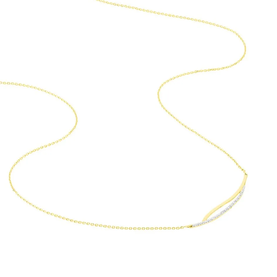 Collier Or Jaune 375/1000 Forme Vagues Diamants 43cm