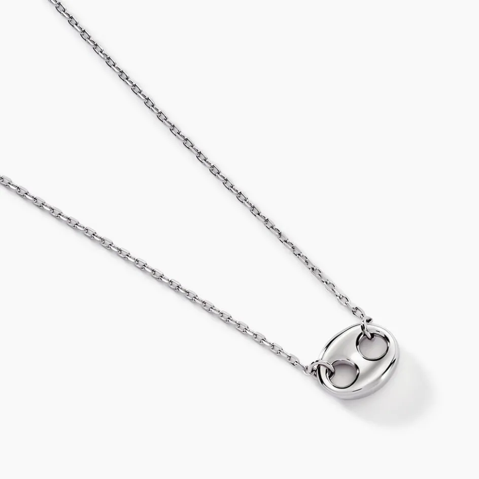 Collier Argent Blanc 925/1000 Motif Grain De Café Maille Forçat 42+3cm