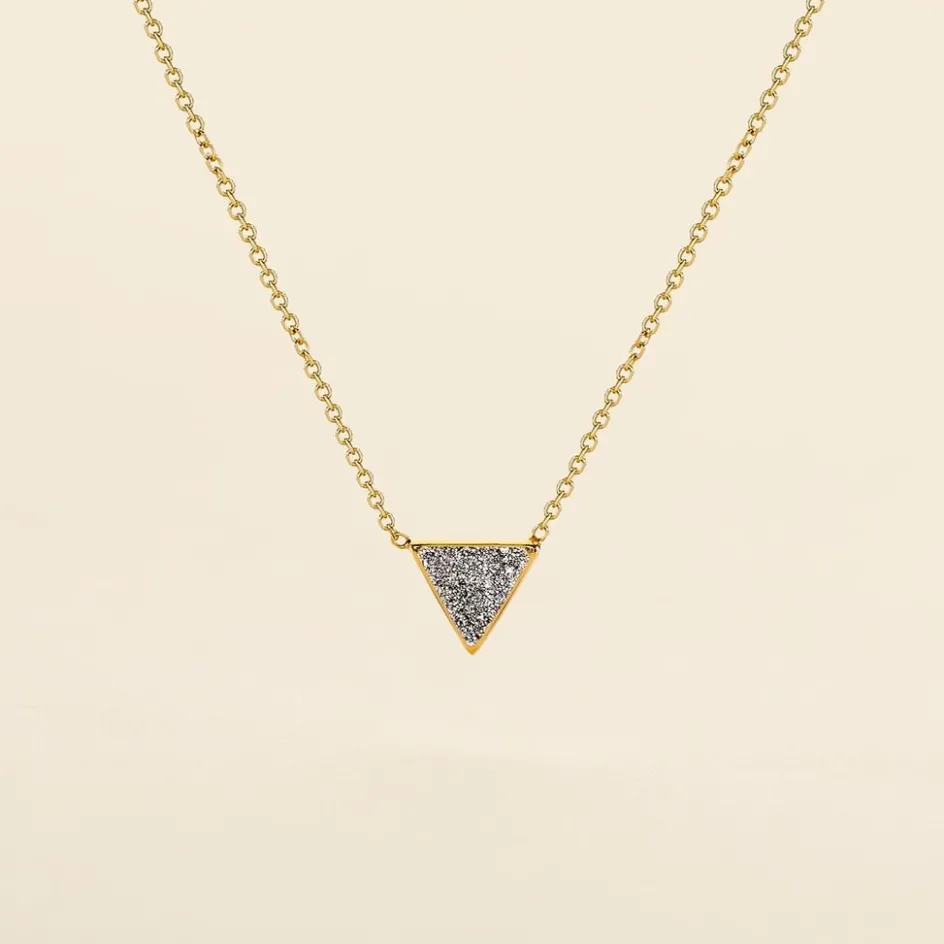 Collier Or Jaune 375/1000 Triangle Glitter Argente Maille Jaseron 40+2cm