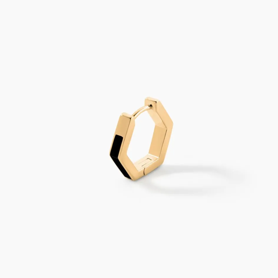 Créole Unitaire Plaqué Or Jaune Hexagone émail Noir Diamètre 16mm