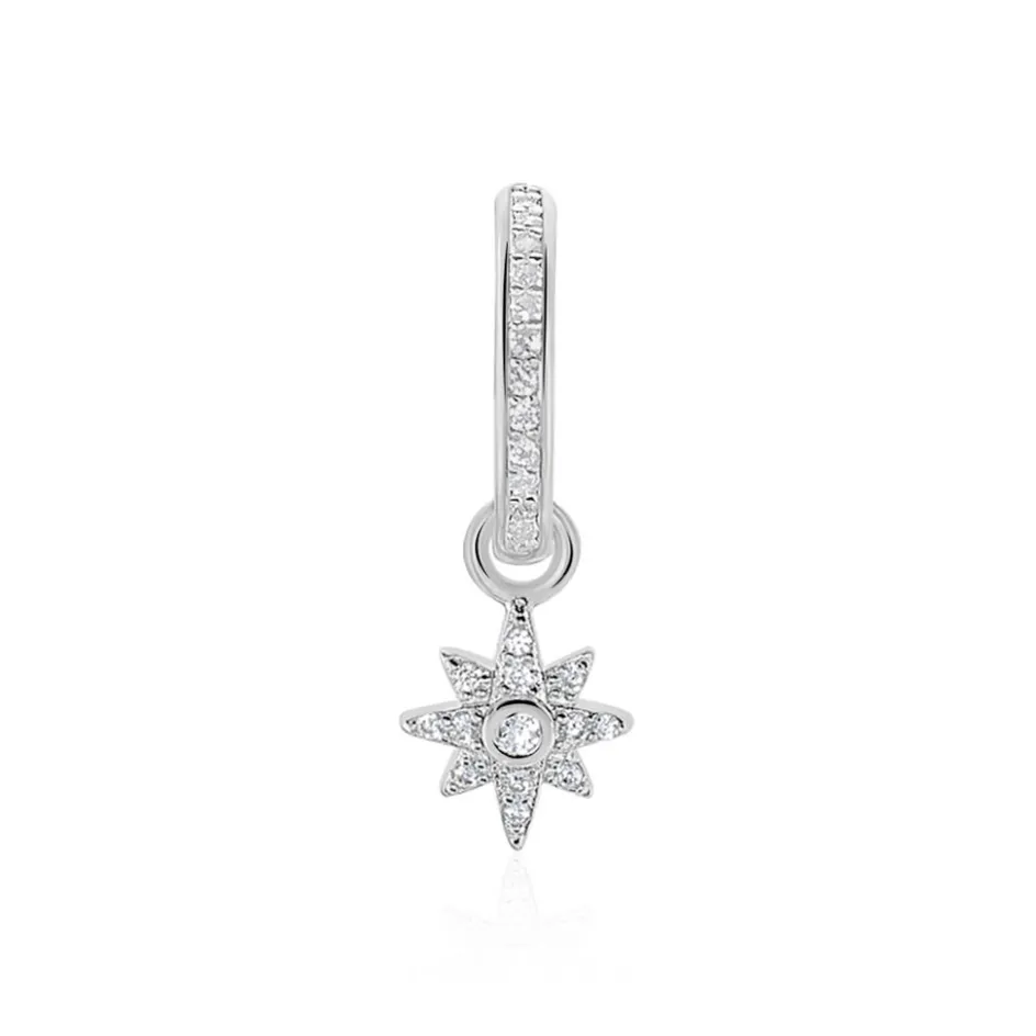 Creole Unitaire Argent Blanc 925/1000 Flocon De Neige Pavage Oxydes De Zirconium