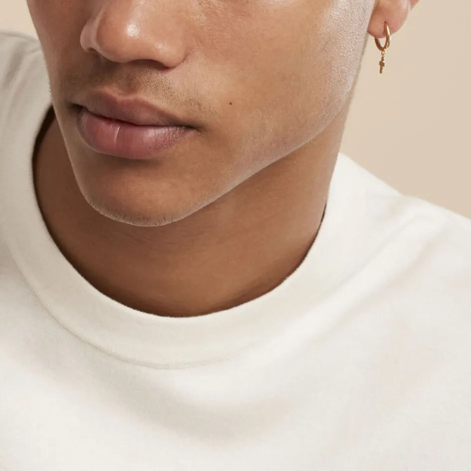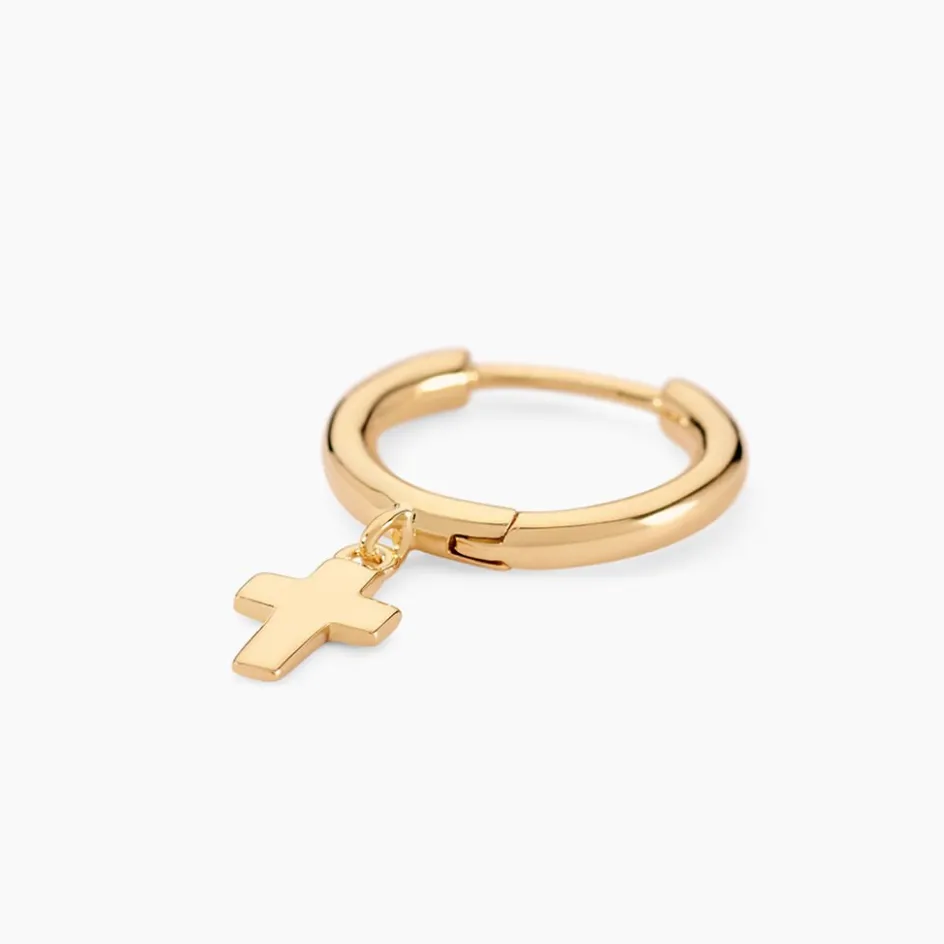 Créole Unitaire Plaqué Or Doré Pampille Croix Diamètre 10mm