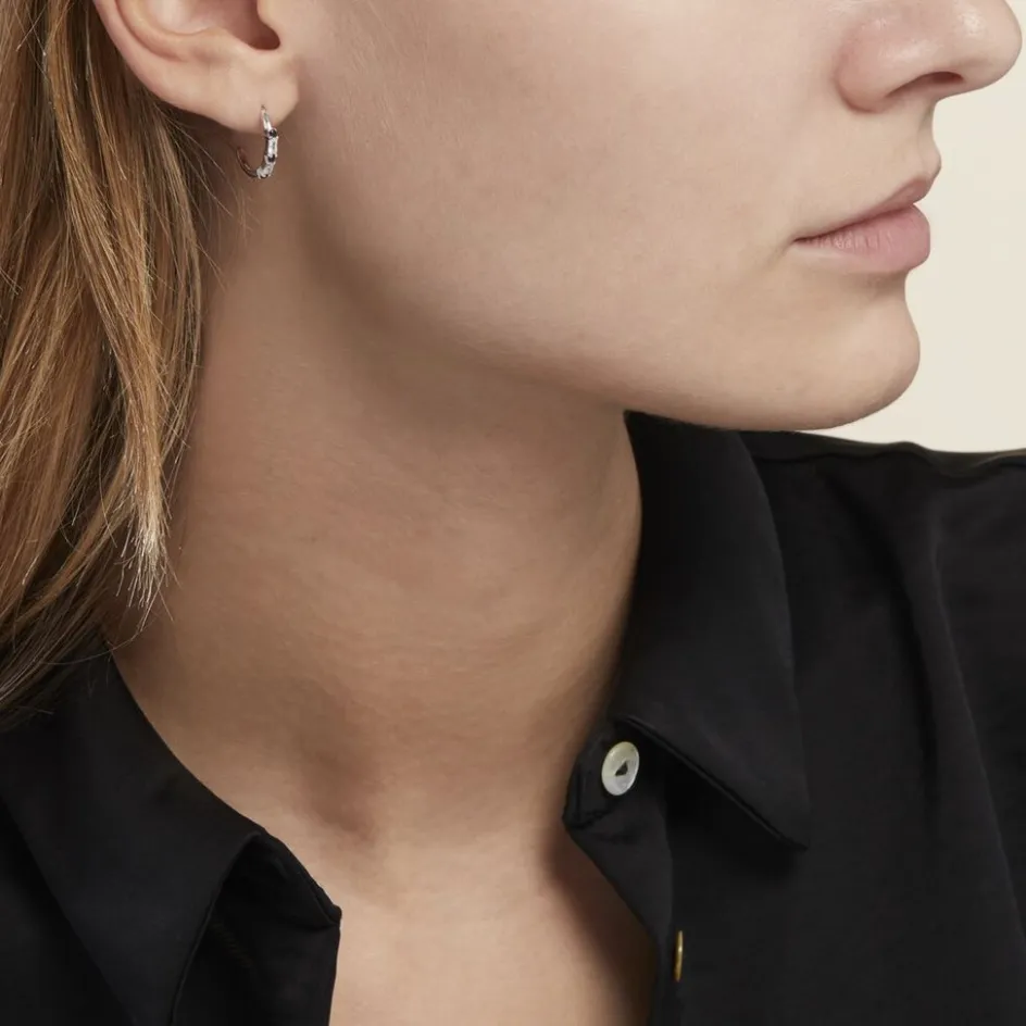 Créoles Argent 925/1000 Oxydes De Zirconium Alternés Noirs Et Blancs