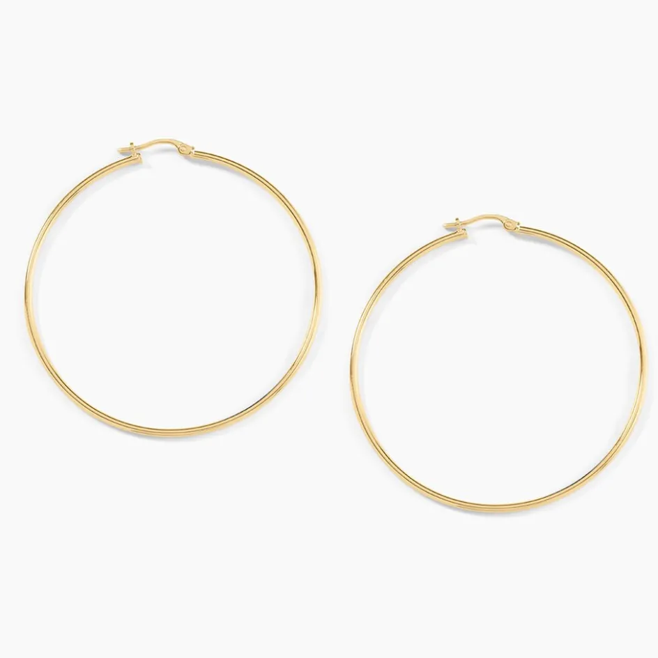 Créoles Or Jaune 375/1000 Fil Rond Lisse Largeur 1.5mm Diamètre 50mm