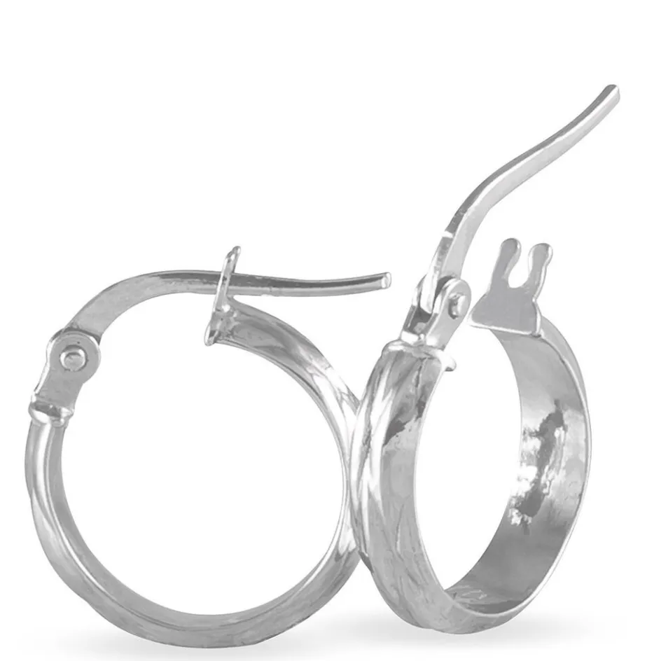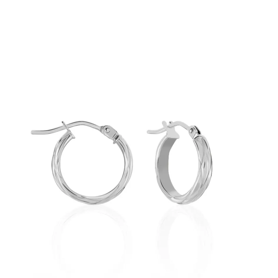 Créoles Or Blanc 375/1000 Fil Demi Jonc Effet Diamanté Largeur 3mm Diamètre 10mm