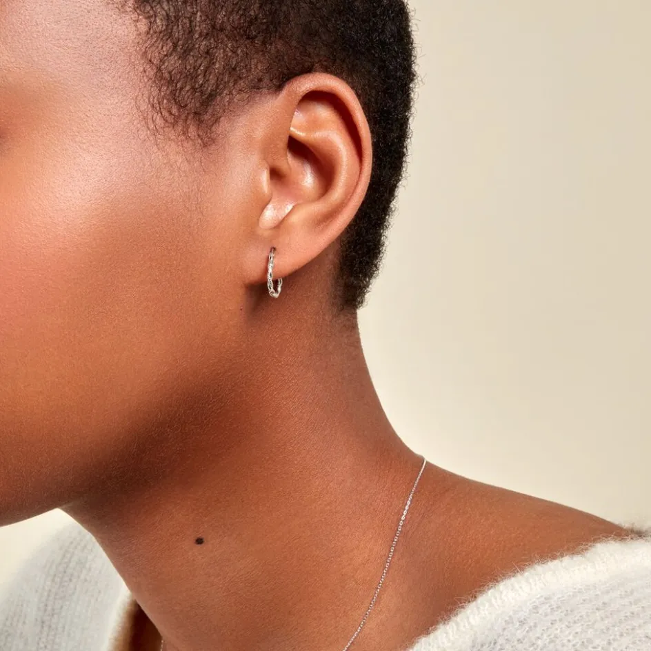 Créoles Argent Blanc 925/1000 Torsadées Et Diamantées Largeur 1.5mm Diamètre 8mm