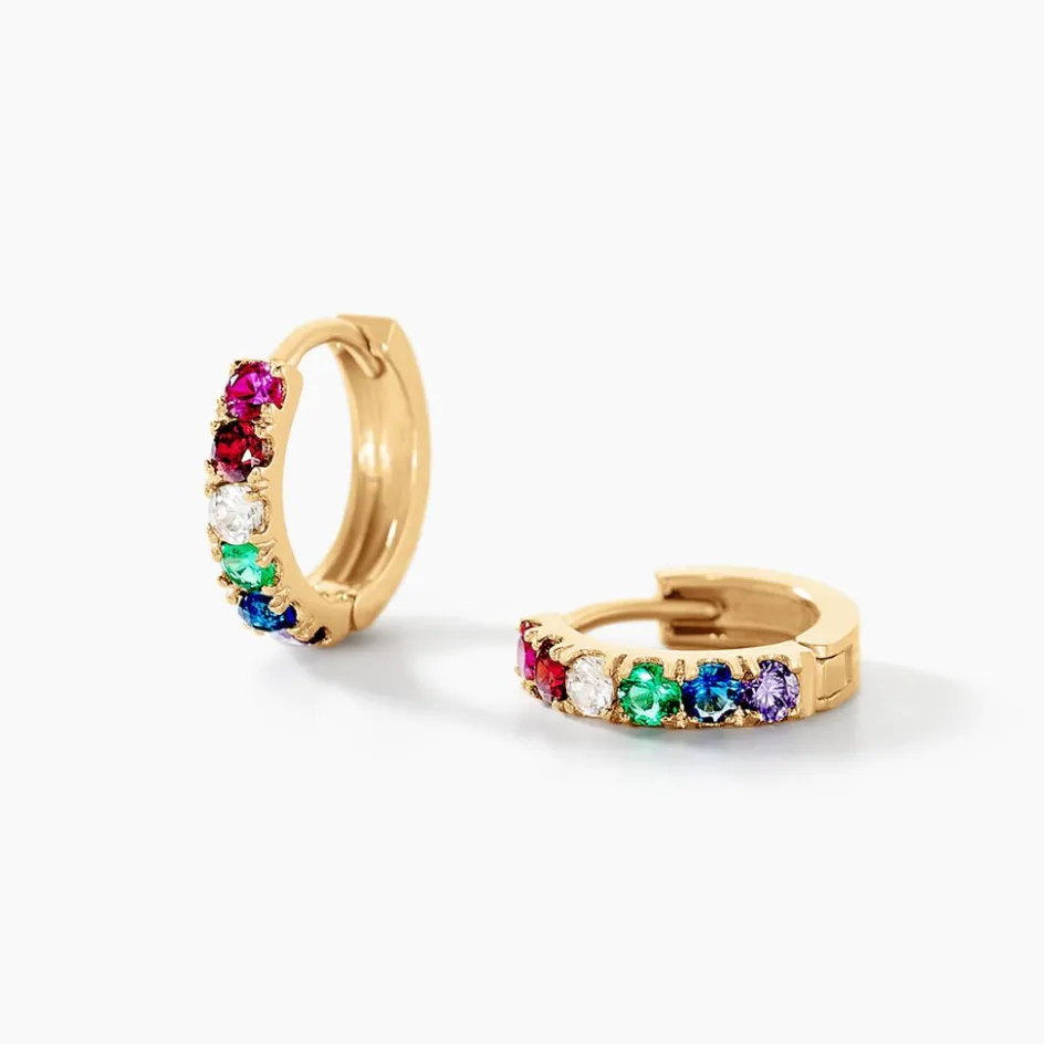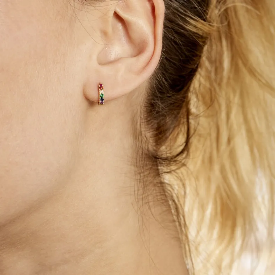 Creoles Or Jaune 375/1000 Pavage Oxydes De Zirconium Multicolores Diamètre 11mm