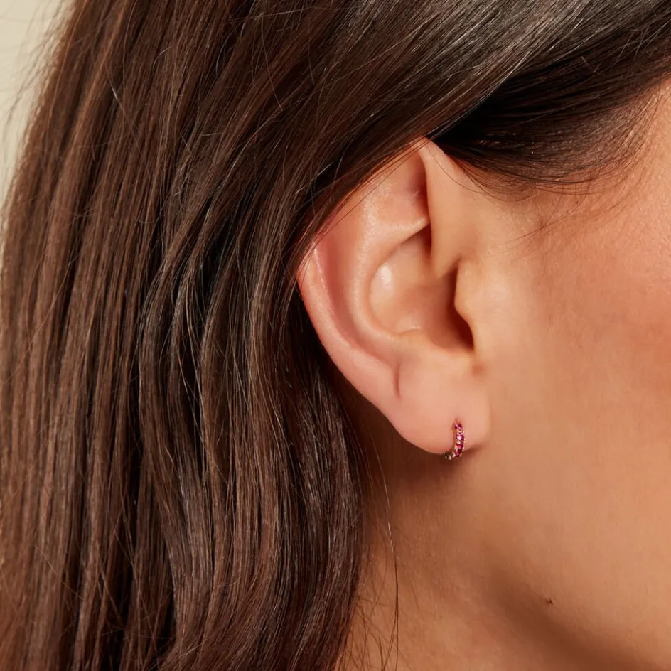 Creoles Or Jaune 375/1000 Pavage Oxydes De Zirconium Rose Diametre 6mm