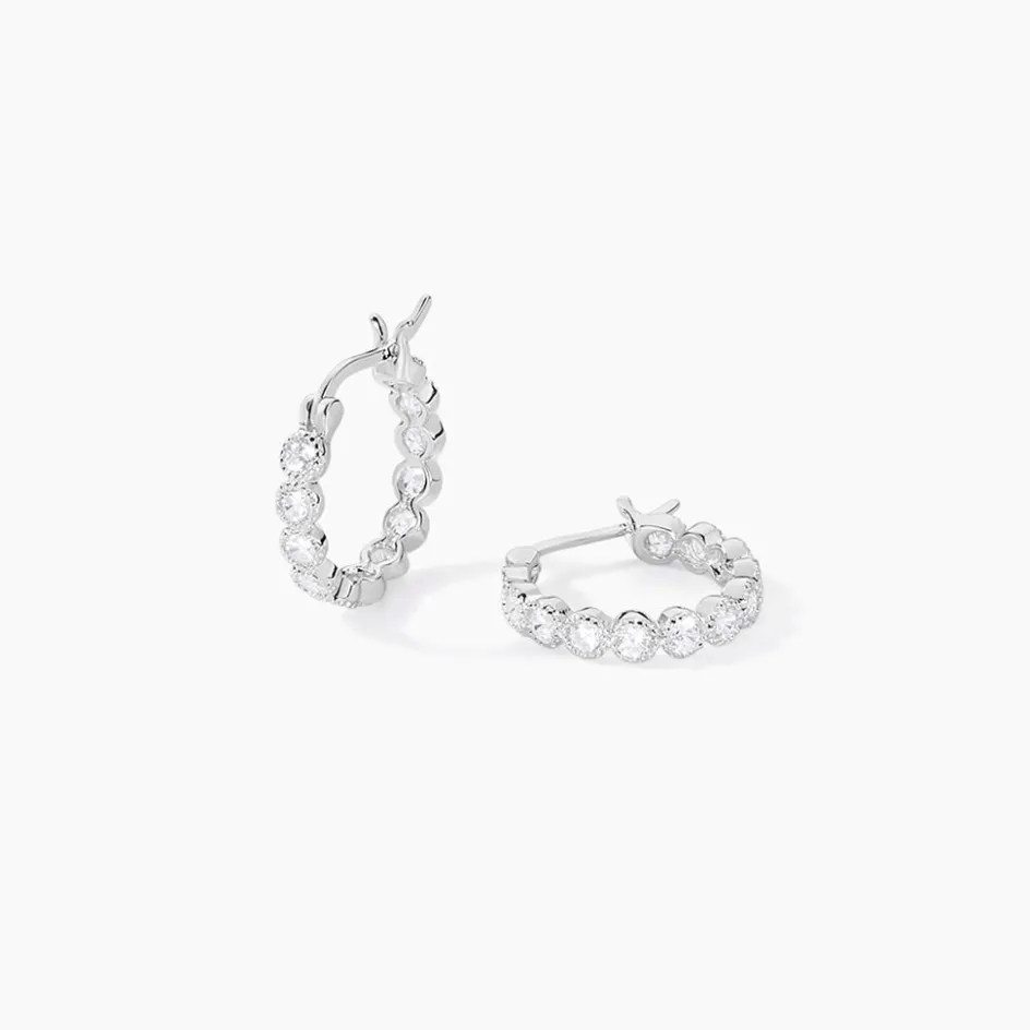 Créoles Argent Blanc 925/1000 Effet Perlé Oxydes De Zirconium Serti Clos Diamètre 18mm