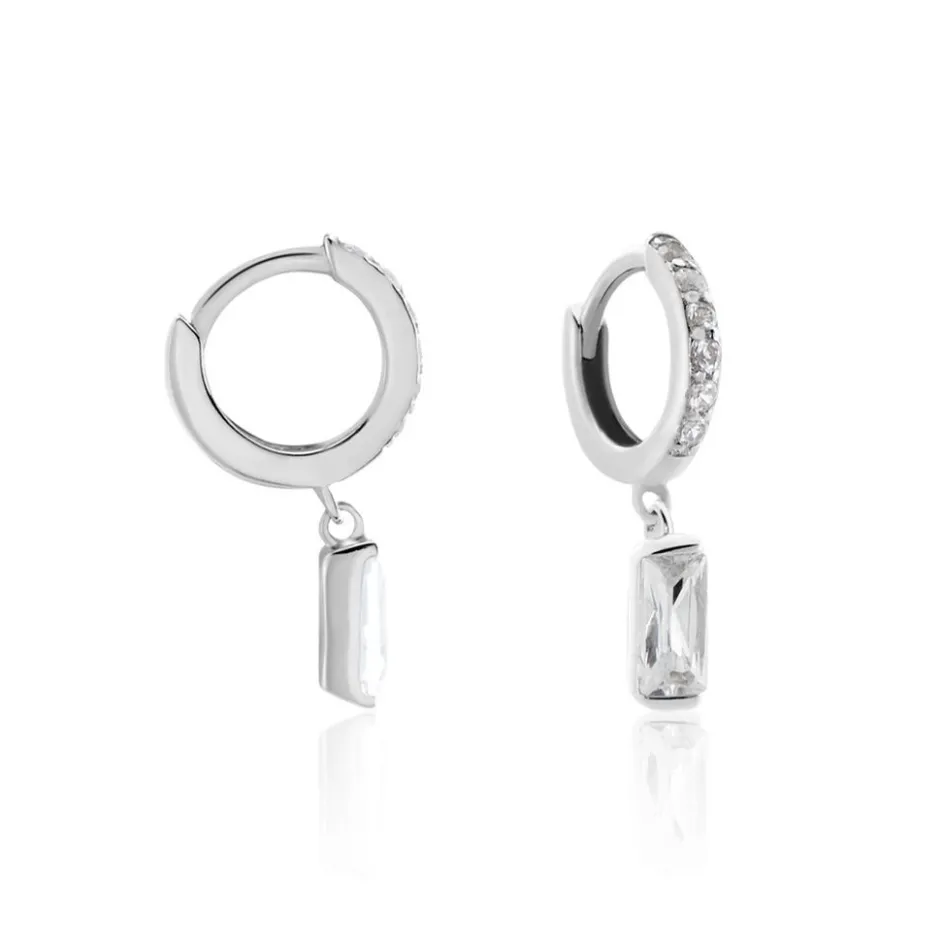 Creoles Argent Blanc 925/1000 Pavage Oxydes De Zirconium Pampilles Rectangles Serti Griffes Oxydes De Zirconium