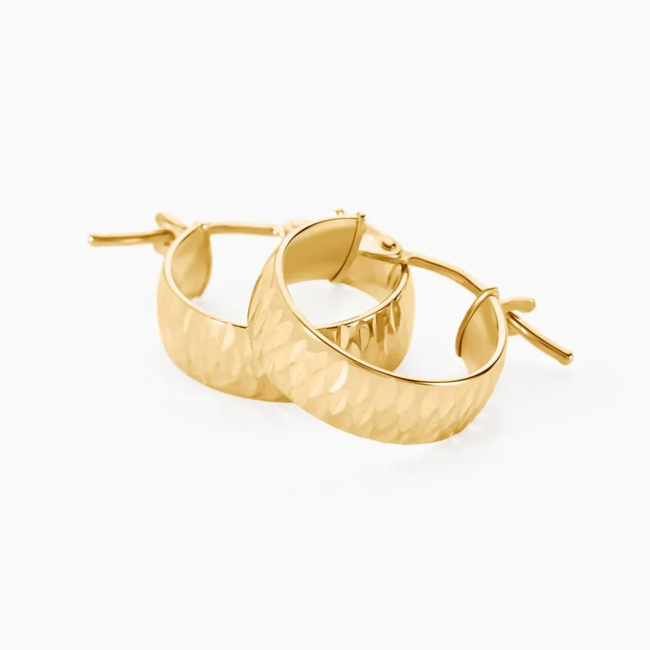 Créoles Or Jaune 375/1000 Fil Plat Effet Diamanté Largeur 4mm Diamètre 10mm