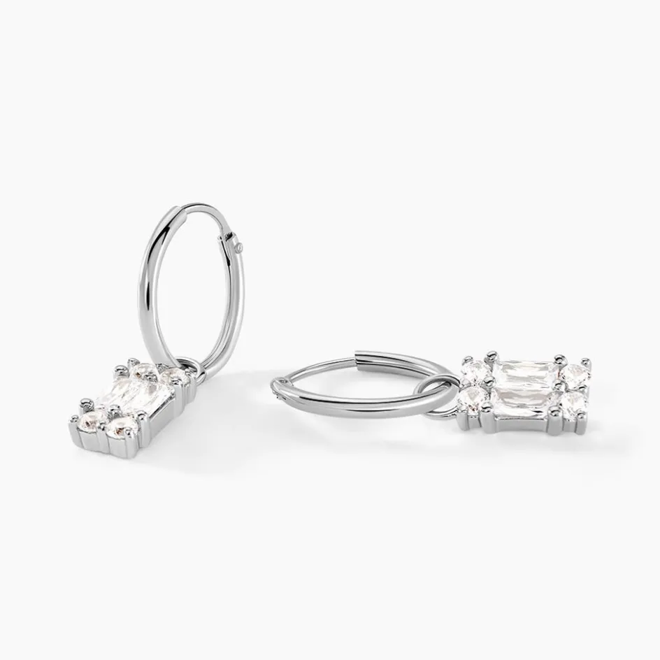 Creoles Argent Blanc 925/1000 Oxydes De Zirconium Taille Baguette Diametre 8.6mm
