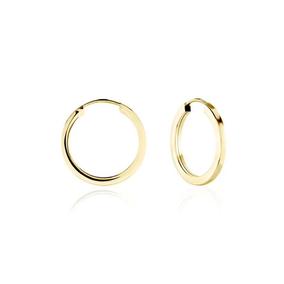 Creoles Or Jaune 375/1000 Fil Flexible Lisse Largeur 1.6mm Diamètre 15mm