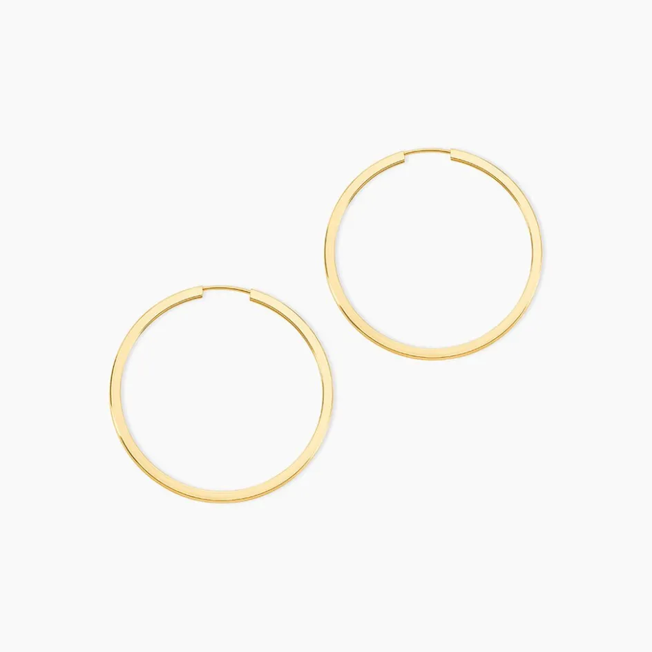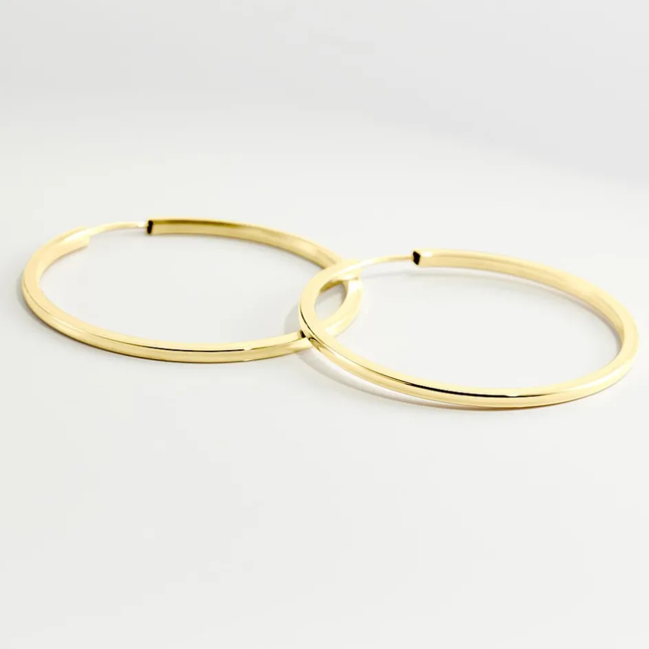 Creoles Or Jaune 375/1000 Fil Flexible Lisse Largeur 1.6mm Diamètre 35mm