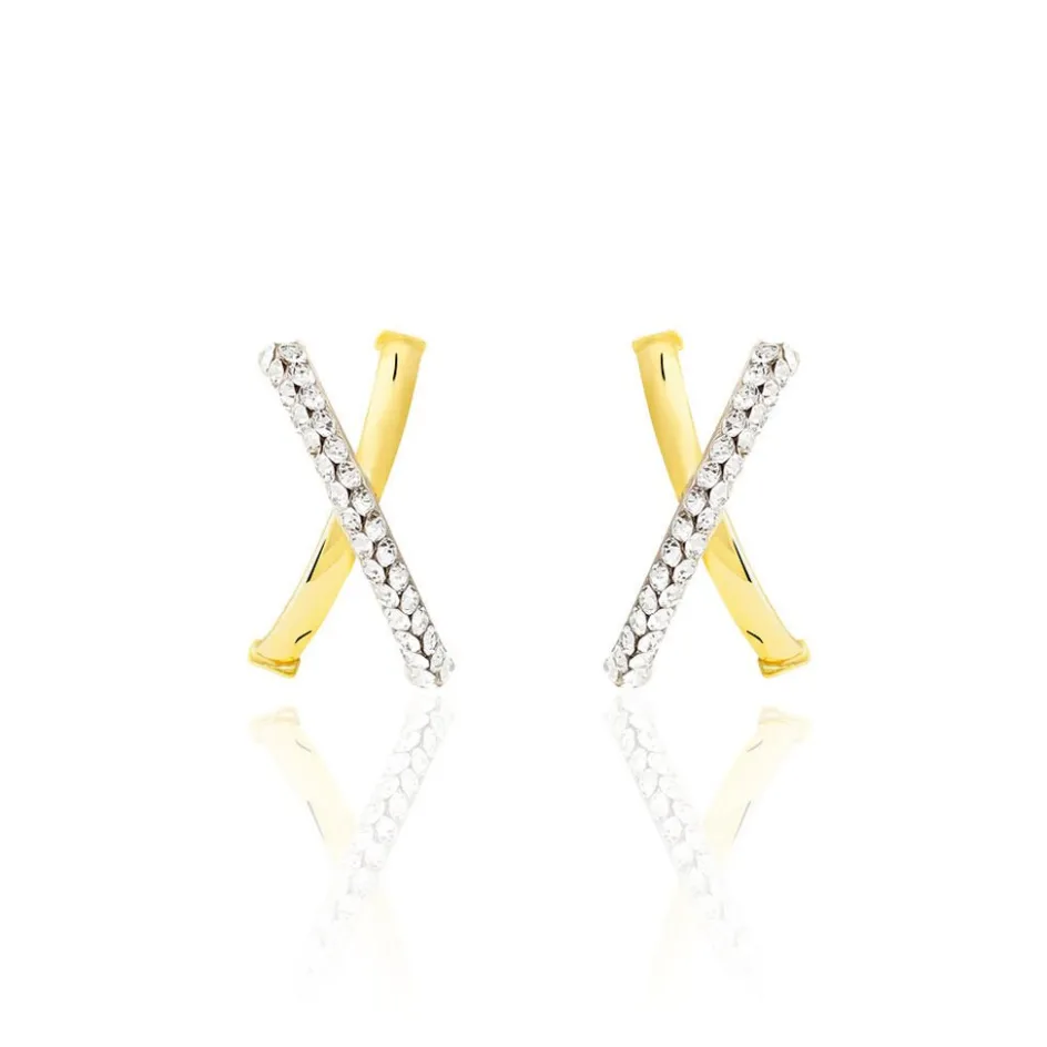 Demi Creoles Or Jaune 375/1000 Croisees 1 Fil Strasse Diametre 15mm