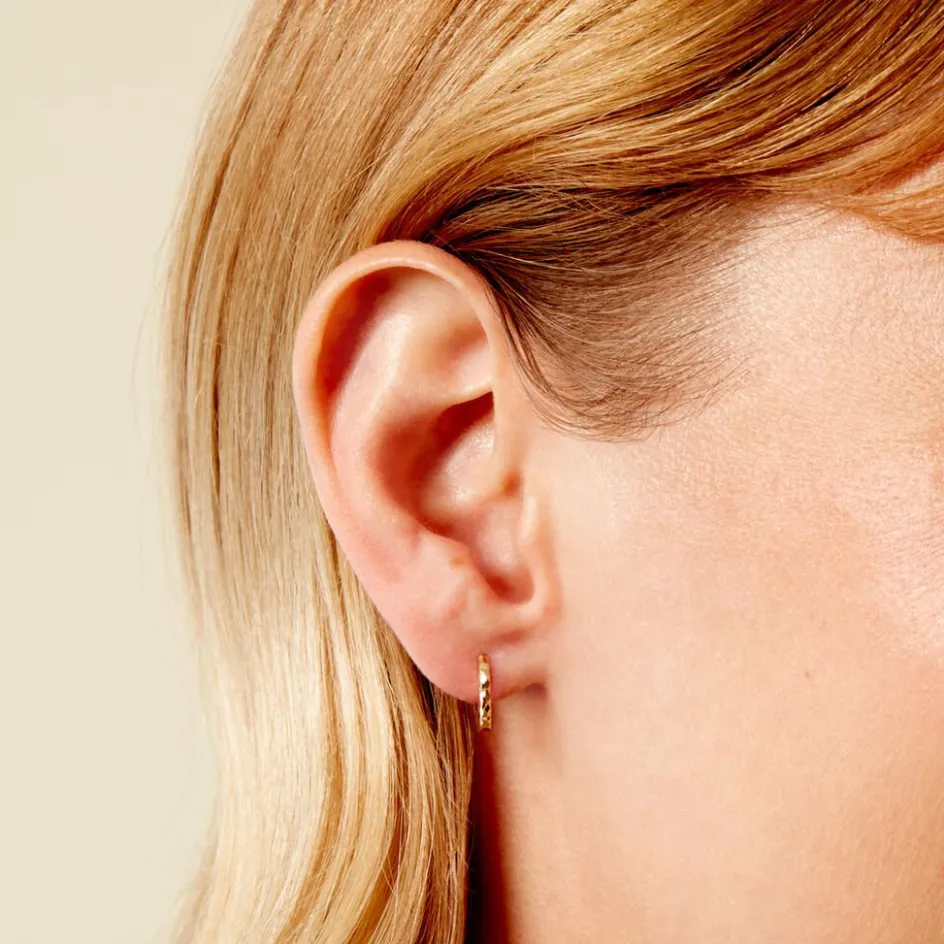 Mini Créoles Or Jaune 375/1000 Diamanté Largeur De Fil 1Mm Diametre 8Mm