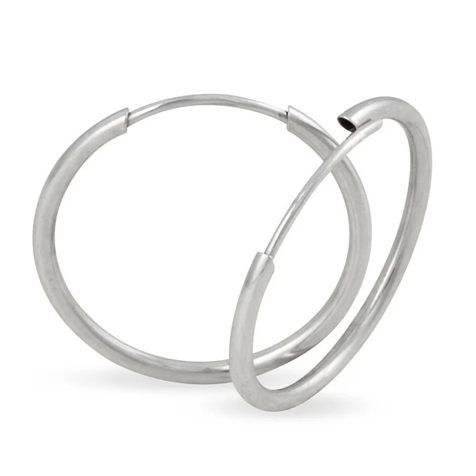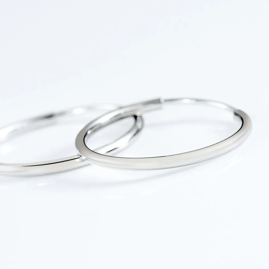 Créoles Or Blanc 375/1000 Fil Flexible Lisse Largeur 1.2mm Diamètre 16mm