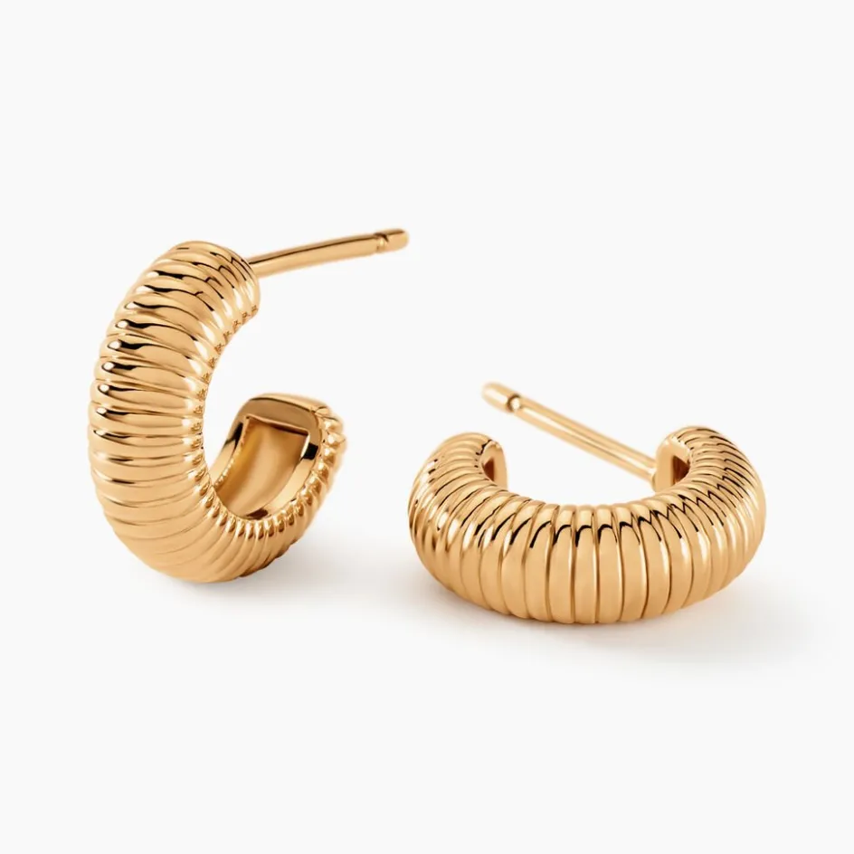 Créoles Plaqué Or Jaune Ouvertes Striées Diamètre 15mm