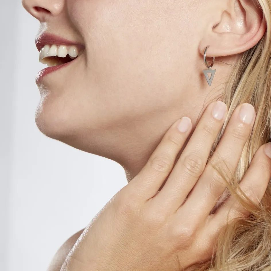Creoles Argent Blanc 925/1000 Pampilles Triangles Ajoures Diametre 12mm