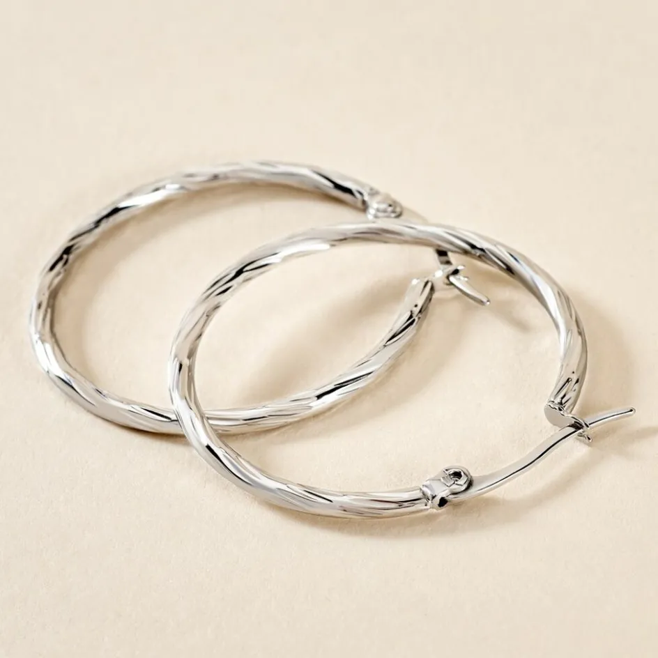 Créoles Acier Blanc Effet Strié Diamètre 30mm
