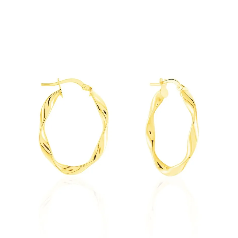 Créoles Or Jaune 375/1000 Ovales Fil Vrillé Largeur 1.5mm Diamètre 23x15mm
