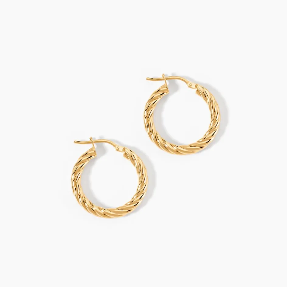 Créoles Or Jaune 750/1000 Fil Rond Torsadé Largeur De Fil 2Mm Diamètre 15Mm