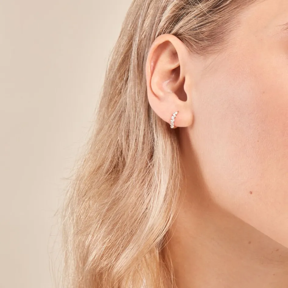 Creoles Or Jaune 375/1000 Jardin De Pierres Diamants Synthetiques Baguettes Sertis Griffes Diametre 8mm
