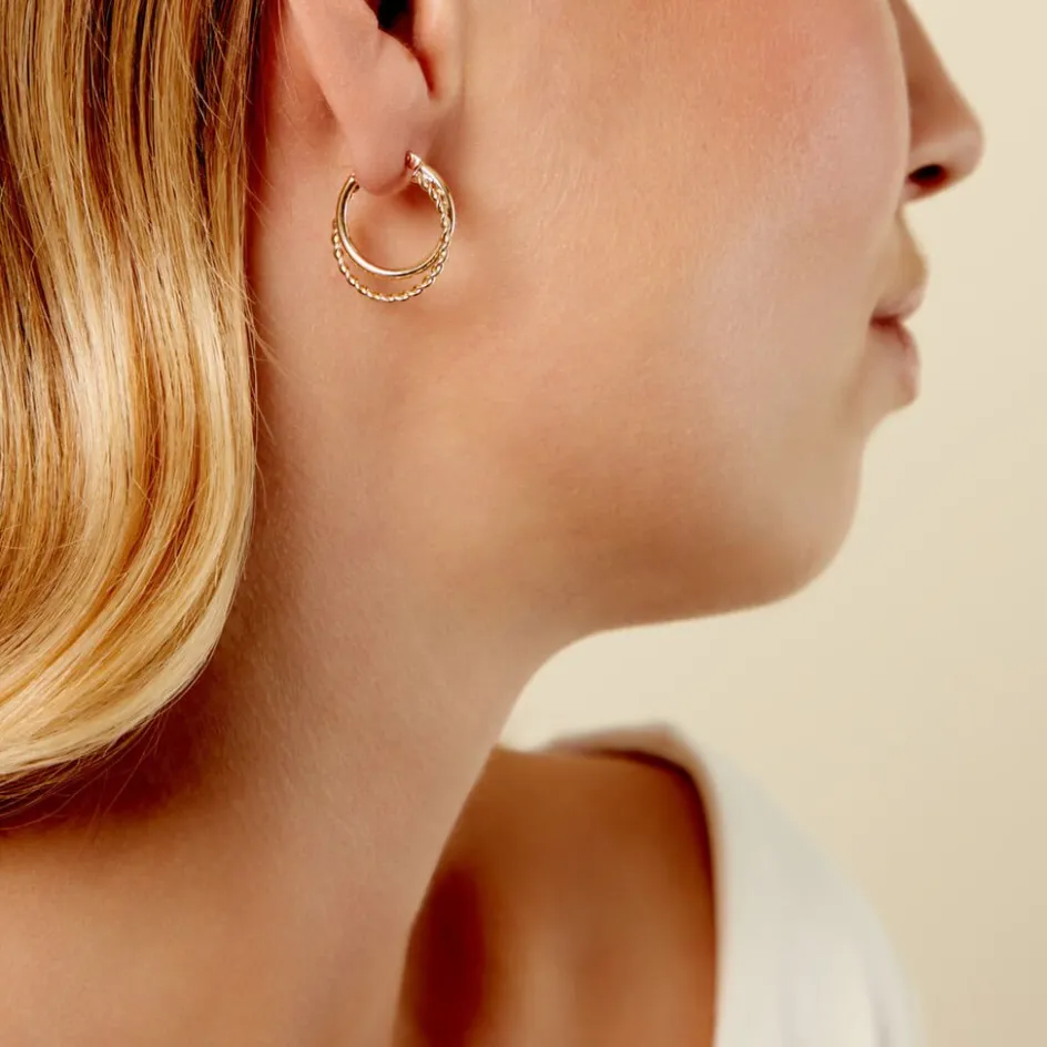 Créoles Or Jaune 750/1000 Double Fil Diametre 14Mm