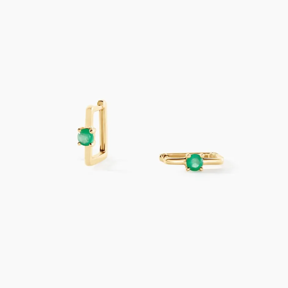 Creoles Or Jaune 375/1000 Carre Avec 1 Emeraude Ronde 0.24cts Serti Griffes
