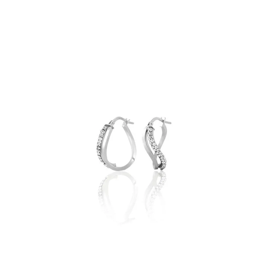 Créoles Or Blanc 375/1000 Deux Fils Carrés Dont Un Fil Avec Strass Largeur 1.4mm Diamètre 15.5×10.9mm