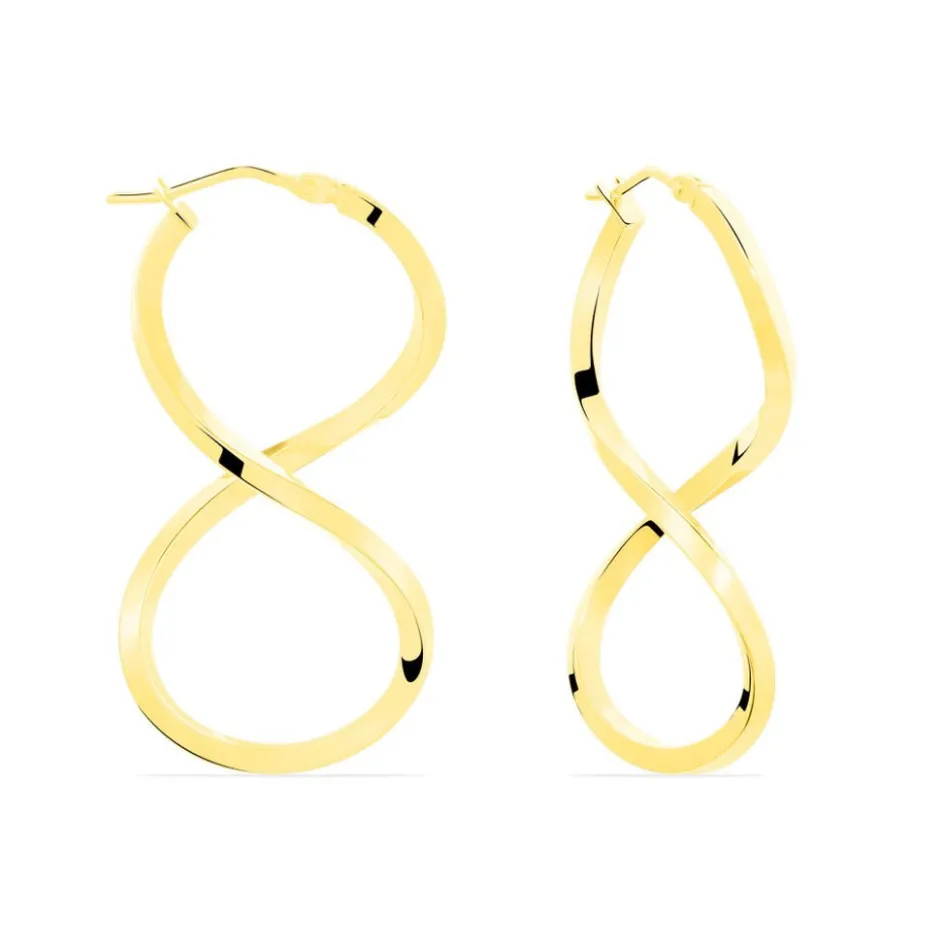 Créoles Or Jaune 375/1000 Forme Huit Fil Triangle Lisse Largeur 2mm Diamètre 38×15.5mm