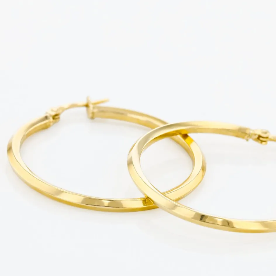 Créoles Or Jaune 375/1000 Fil Triangle Lisse Largeur 2mm Diamètre 30mm
