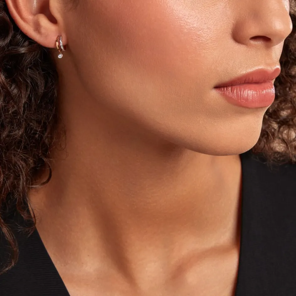 Boucles D’oreilles Or Jaune 375/1000 Formes Demi Creoles 2 Rangs Ajoures Avec 1 Pastille 1 Rang Pavage Diamants 0.03cts