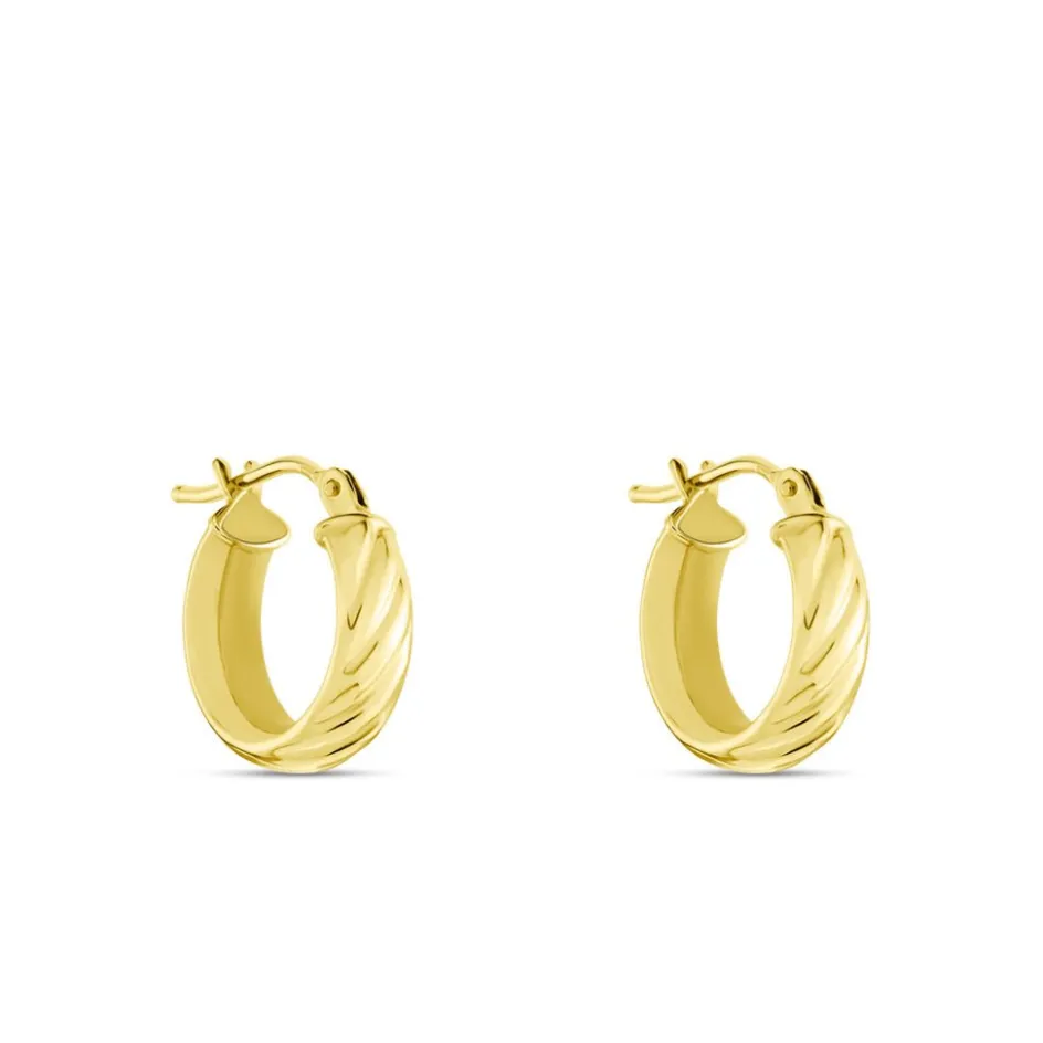 Créoles Or Jaune 375/1000 Fil Demi Jonc Strie Largeur 4mm Diamètre 8mm