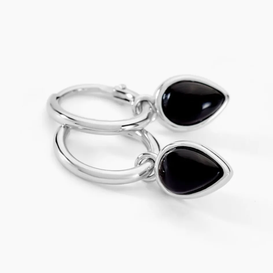 Créoles Argent Blanc 925/1000 Gouttes Agate Noire Diamètre 8mm